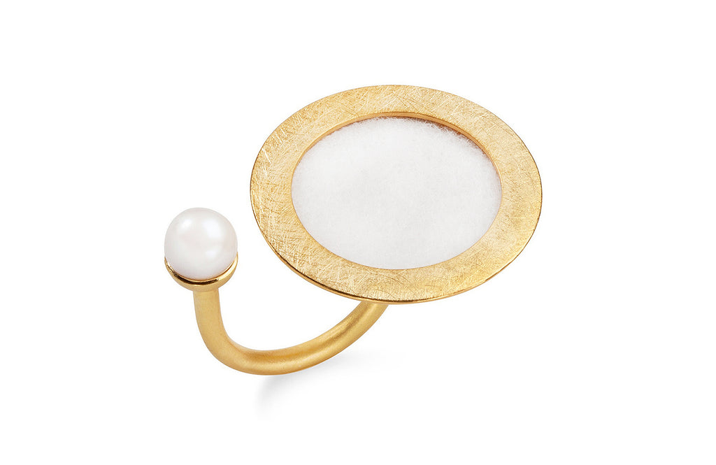 Ein ganz besonderes Stück für Liebhaber*Innen großer Ringe! Schale und Süßwasserperle scheinen zwischen den Fingern zu schweben. Trotz seiner Größe ist der Ring unglaublich bequem und somit auch für den Alltag gut geeignet. Zarte Pastelltöne harmonisieren wunderbar mit der weißen Perle, während kräftige Farben einen Kontrast bilden und eine starke Gesamtwirkung entsteht.