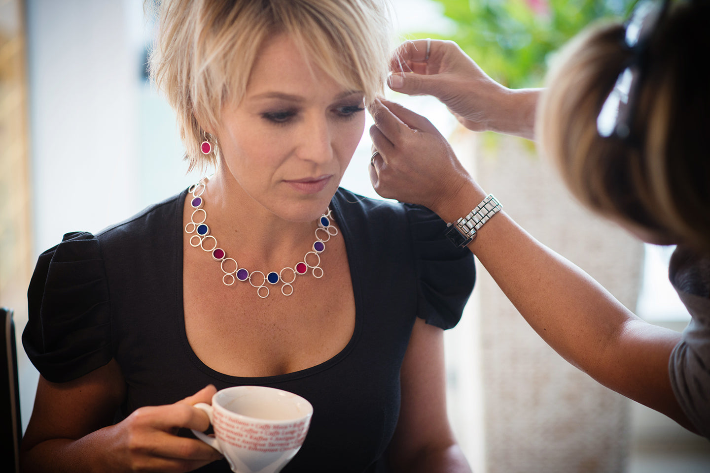 Seit über 15 Jahren schon darf ich Andrea Ballschuh zu meinen treuen Kundinnen zählen. Sie trägt meinen Schmuck gerne und aus Überzeugung – auch vor der Kamera, wenn sie moderiert. Andrea interessiert sich immer für meine neuesten Entwürfe, und irgendwann hatte sie die Idee, ein gemeinsames Fotoshooting zu veranstalten.
