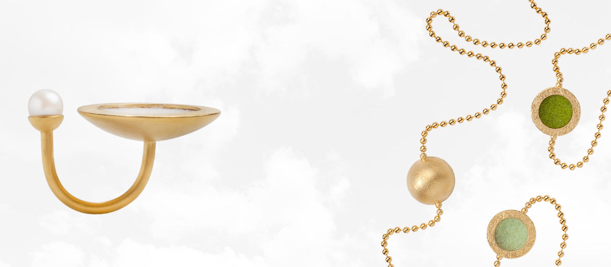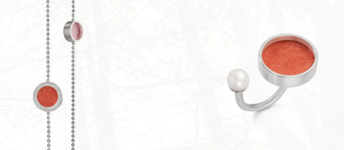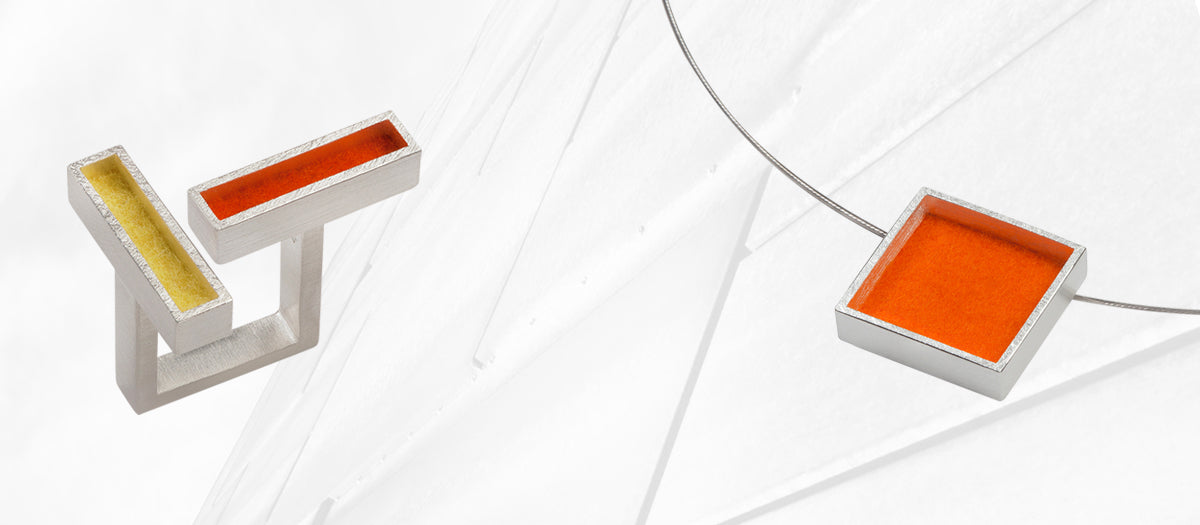 In der Schmuckkollektion "rotondo" treffen Kreise auf klare Kanten. Was entsteht ist ein spannungsvoller Kontrast, eine moderne Formensprache für Purismus-Liebhaber*Innen und Menschen die Farben mögen.