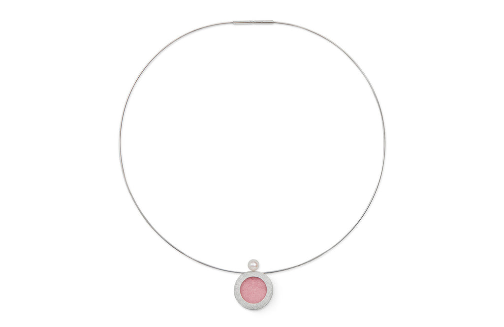 Die zierliche Variante des Schälchenanhängers mit Süßwasserperle besticht durch ihre Zartheit und Leichtigkeit. Der Glanz der Perle harmonisiert wunderbar mit der Wärme des Filzes und der eleganten Kühle des Silbers.